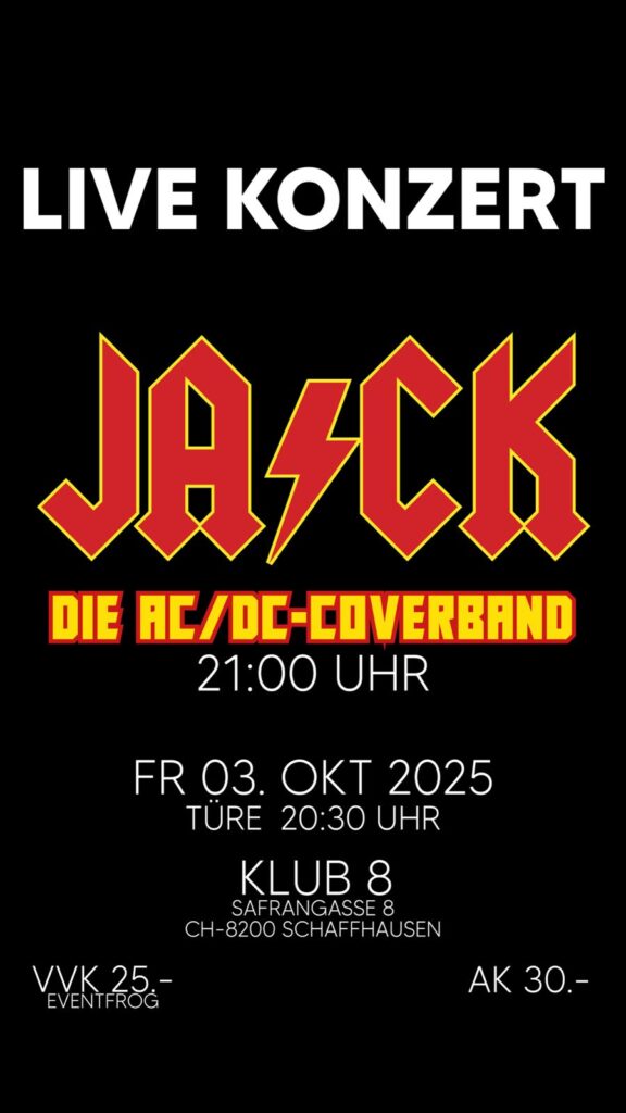 🎸 JACK – Die AC/DC-Tribute-Show im klub 8 Der Dampfhammer aus Süddeutschland kommt nach Schaffhausen