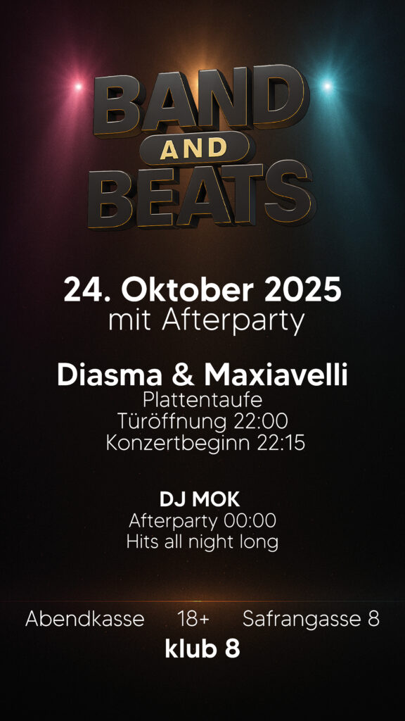 Am 10.10. um zehn Uhr (Türöffnung 21:00 Uhr) geht es “back to the roots” in den KLUB 8 an der Safrangasse im ehemaligen “Jugendchäller”.