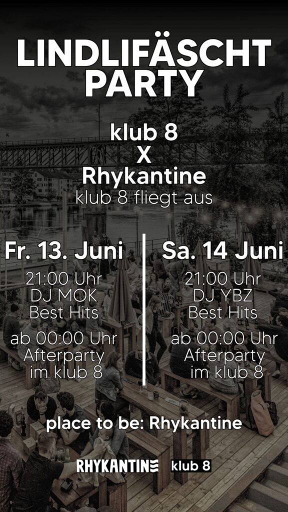 Lindlifäscht 2025 x Klub8 x Rhykantine – Open Air & Afterhour!Freitag & Samstag, 13. & 14. Juni
